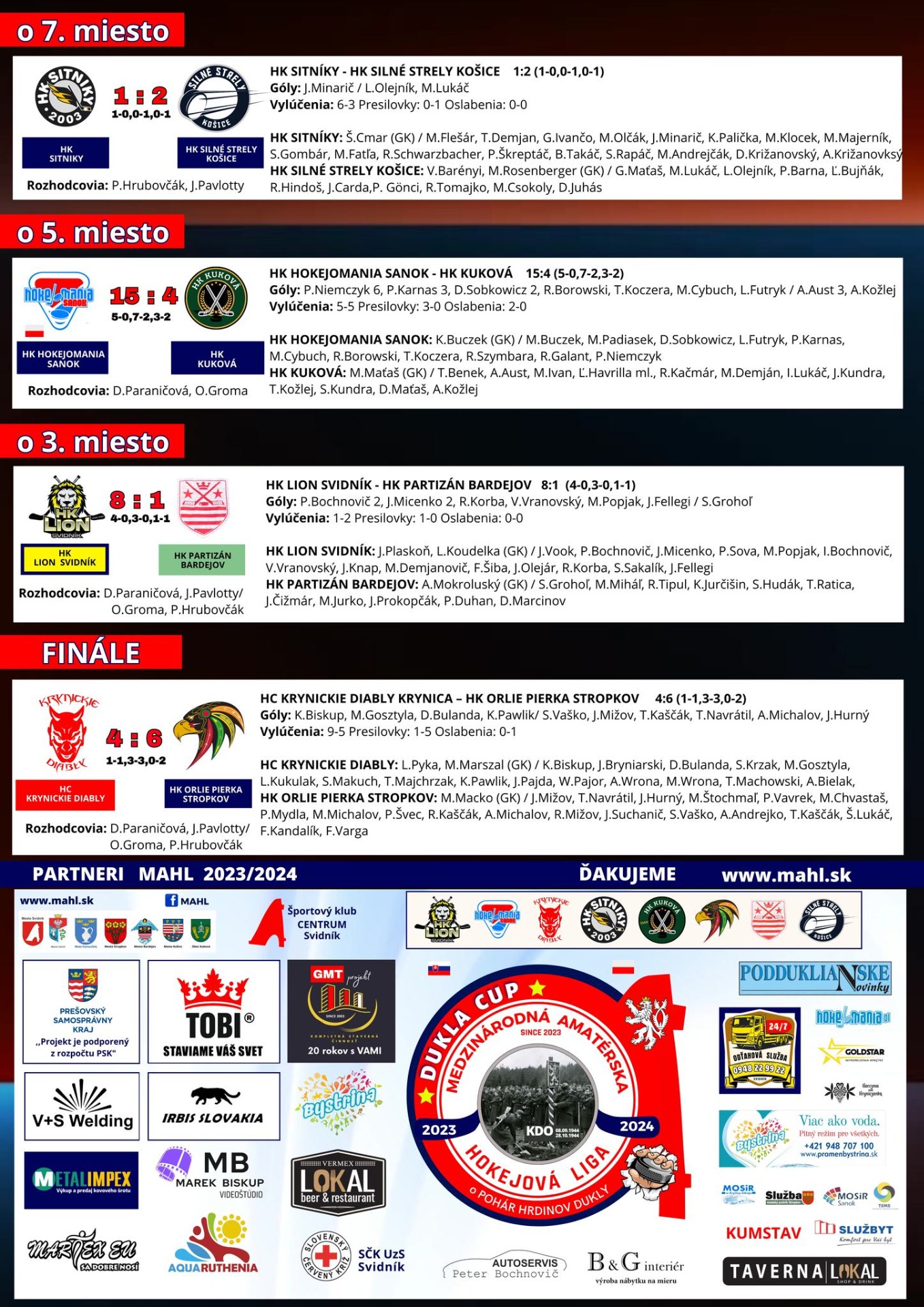 zápas o 1. miesto, HC KRYNICKIE DIABLY - HK ORLIE PIERKA STROPKOV 4:6