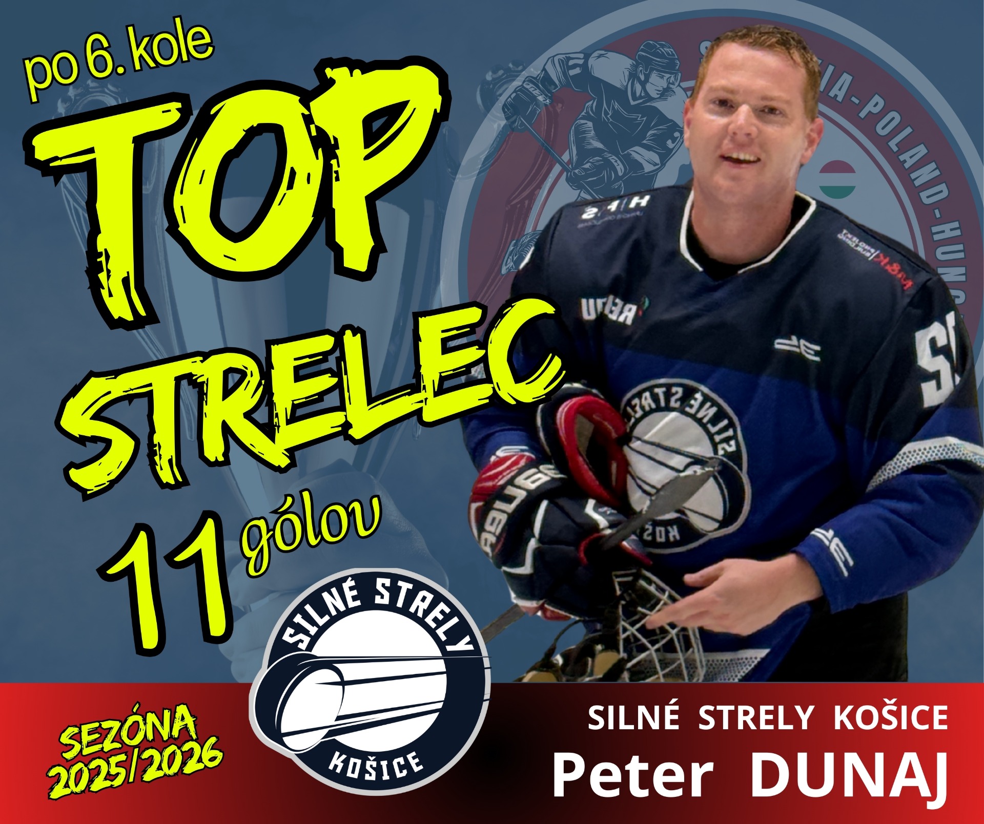 TOP STRELEC po 6.kole - Peter DUNAJ (Silné Strely Košice), 11 gólov
